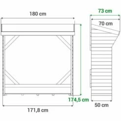 Dimensions hors tout : L 180x Ht 175x lg 73 cm.