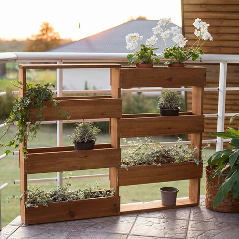 L’Ă©tagère Ă plantes est une belle jardinière murale en bois qui permet de cultiver des herbes aromatiques, des plantes et des lĂ©gumes dans un espace rĂ©duit. Conçue pour l’extĂ©rieur, elle peut Ă©galement ĂŞtre utile Ă la maison pour faire pousser vos fruits et lĂ©gumes. Peut ĂŞtre suspendue sur un mur ou dressĂ©e sur un balcon, idĂ©ale pour une jolie dĂ©coration.