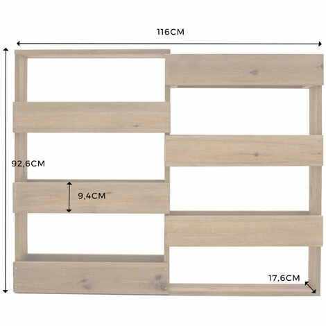Conseils d’entretien : Nettoyez l’Ă©tagère avec un savon doux et sĂ©chez-le avec un chiffon sec et propre. Traitez-la tous les ans pour prĂ©server longtemps son apparence et sa soliditĂ©.