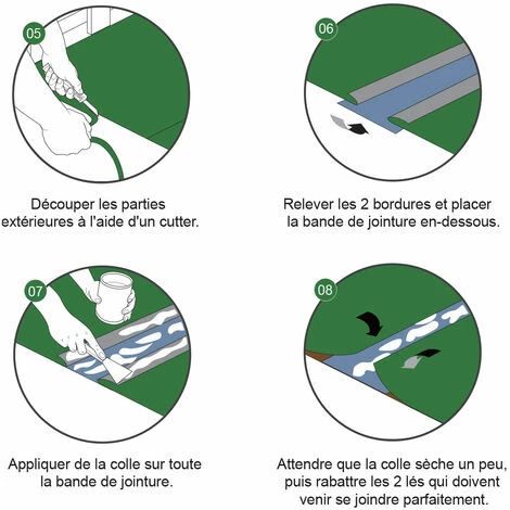 En revanche pour la pose sur sol dur, seul des bandes autocollantes sont nécessaires.