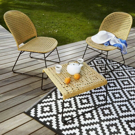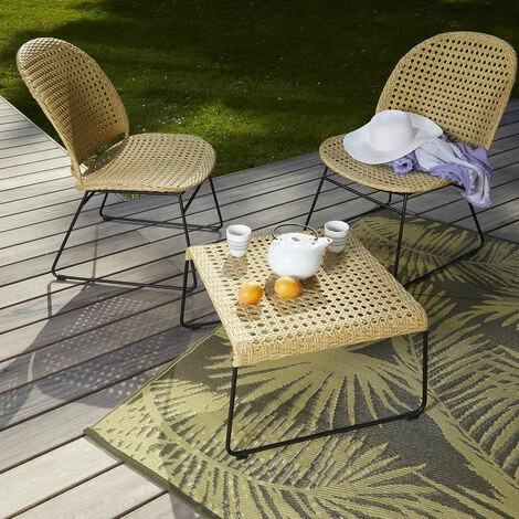 Salon 2 fauteuils + table basse en rotin synthétique et métal