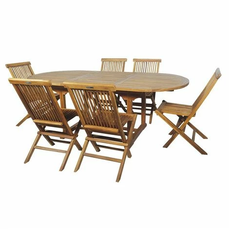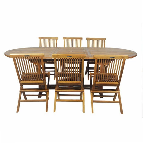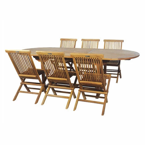 Salon de jardin en teck grade C Lombok : table ovale + 6 chaises