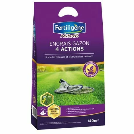 Engrais gazon 4 actions 5.6kg 140m² /nc de la marque FERTILIGENE.